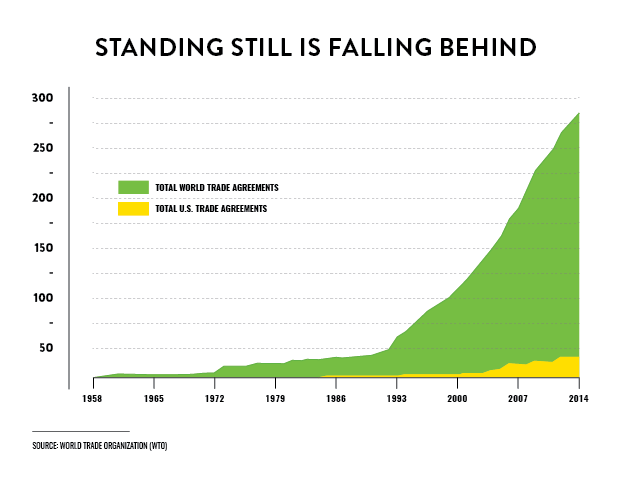 Many of our competitors, including the European Union (EU), Australia, and Canada are benefitting from preferential trade agreements in Asia at our expense. Finally, the absence of formalized U.S. trade pacts in Asia leaves an opening that China is rapidly moving to fill, one that extends even beyond merely economic influence. U.S. exporters are at risk of falling behind global competitors if we do not quickly negotiate new trade deals to open these markets and help position the U.S. as the most competitive and attractive trading partner.