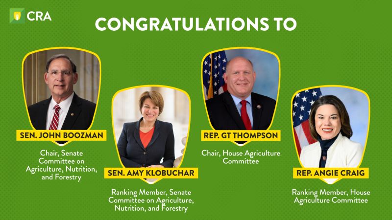 CRA looks forward to partnering with Senator John Boozman, Senator Amy Klobuchar, Representative GT Thompson, and Representative Angie Craig to champion the ag bioeconomy and promote innovation across the country.