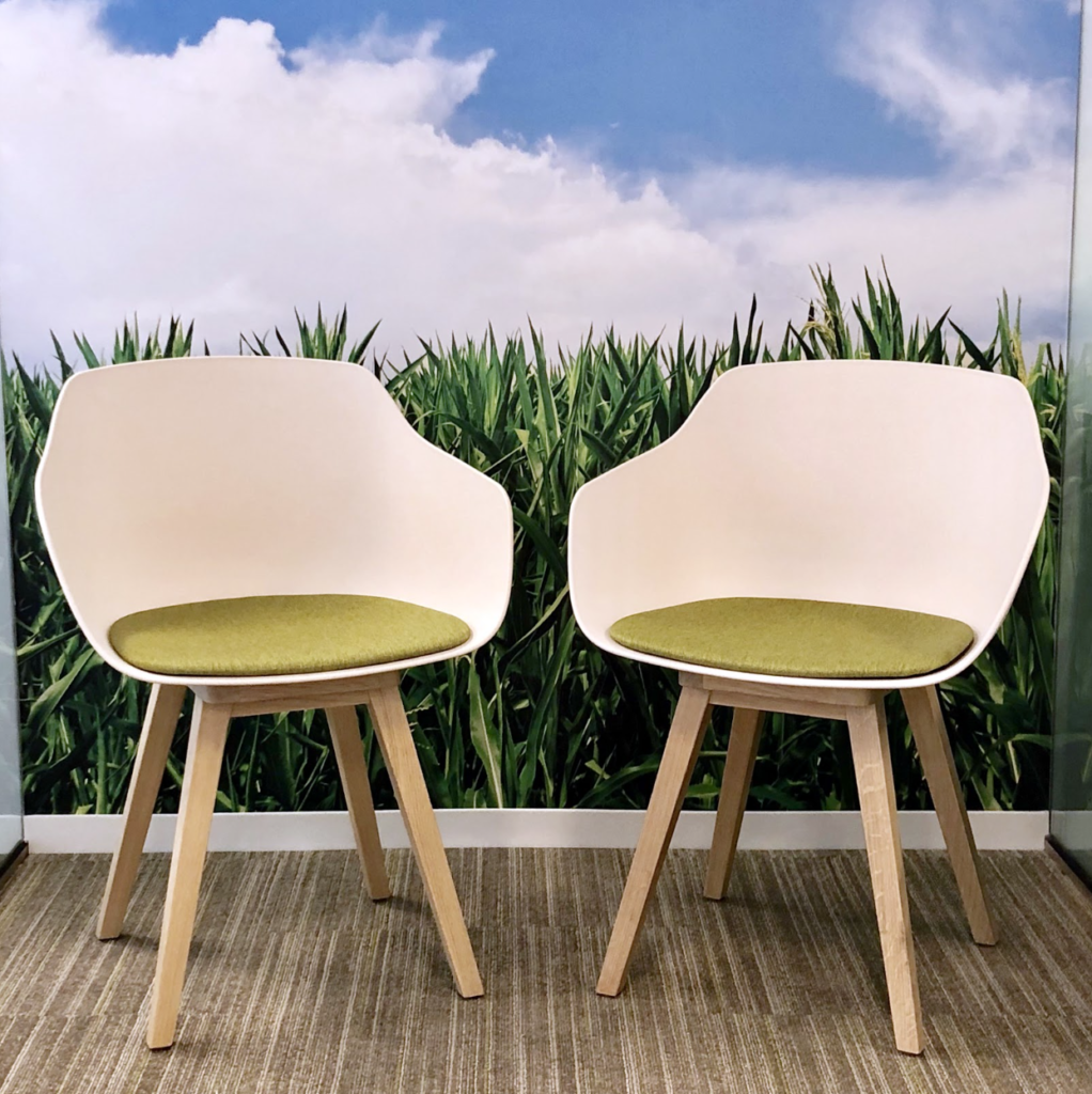 Our chairs are made from 10 pounds of bioplastic, sourced from cornstarch and other natural fibers. This material can be injected or extruded – providing manufacturers maximum flexibility in shaping and molding new products while providing you with maximum comfort.